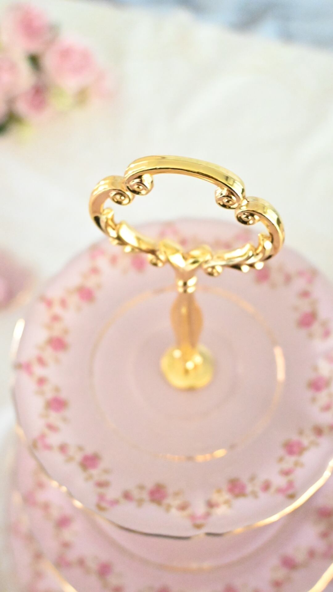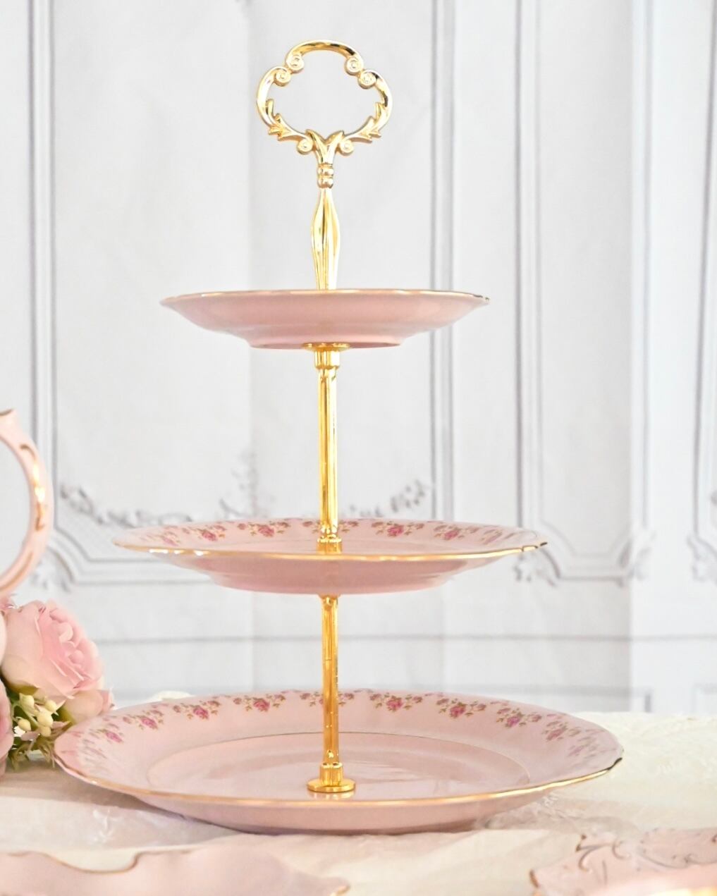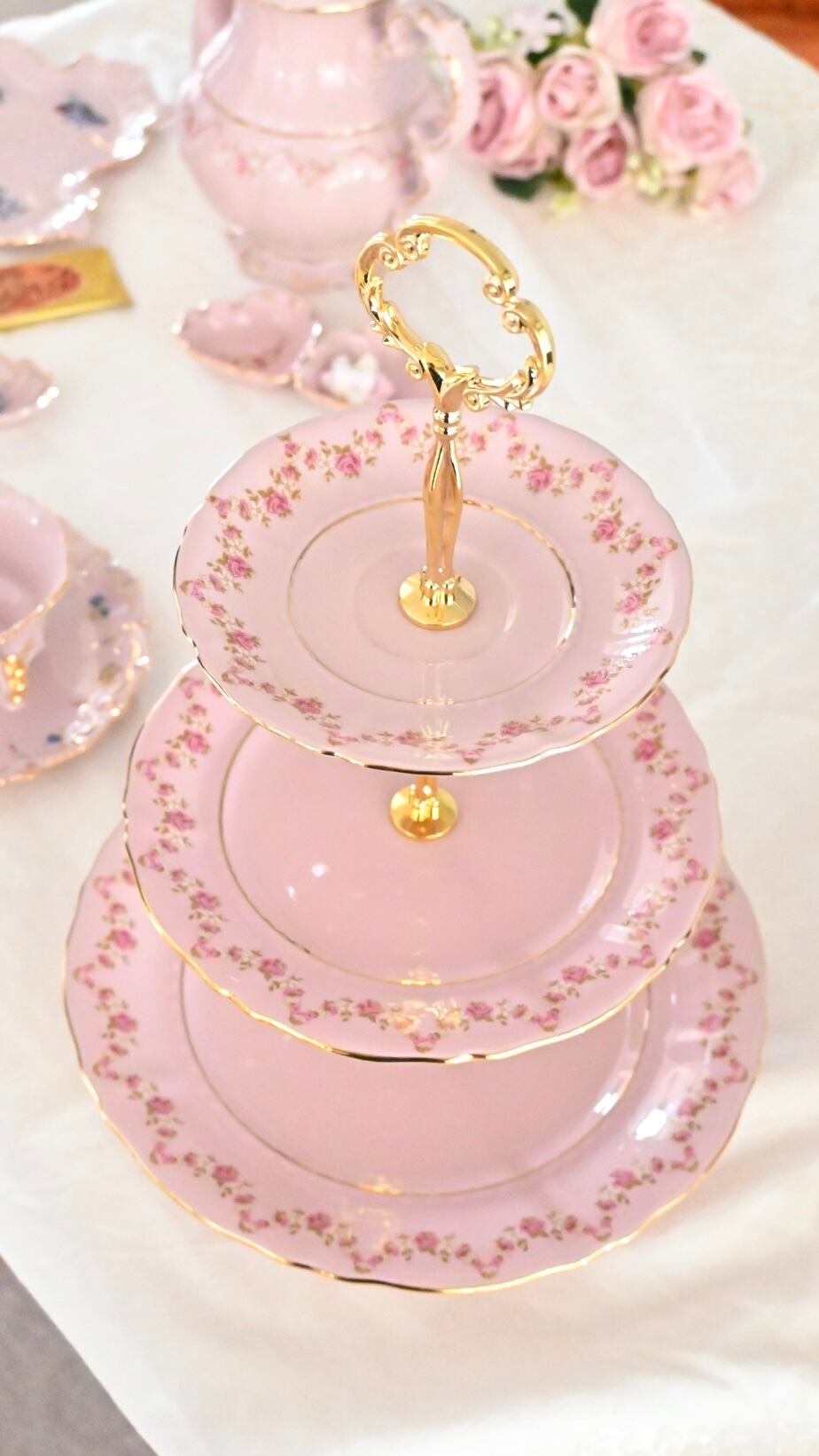薔薇と白い花が描かれたとっても華やかで素敵なケーキスタンドです。
